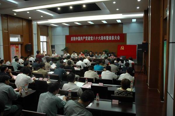 會場坐無缺席 受表彰先進領獎 新黨員莊嚴宣誓 受公司黨委書記、董事長楊揚委托,孫明如副書記總結(jié)講話