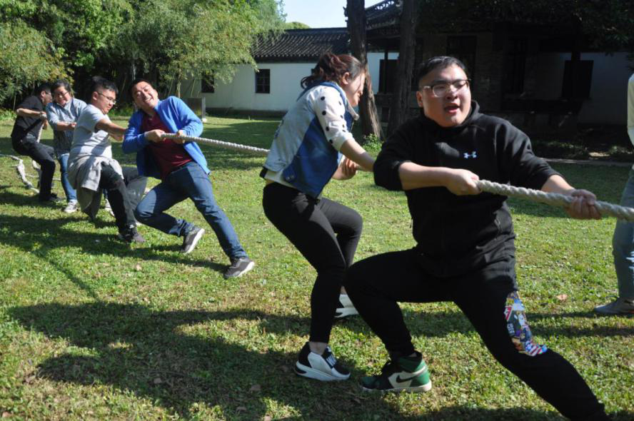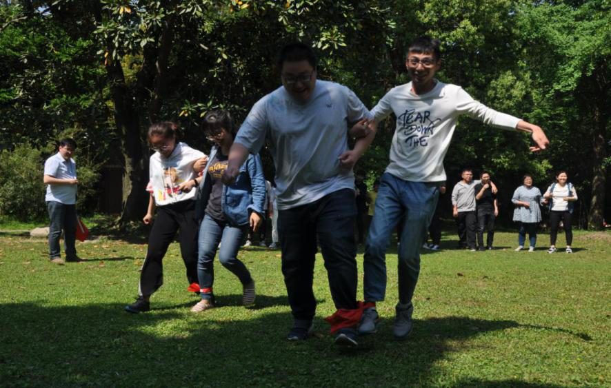 活動在南通嗇園內(nèi)舉行。活動以團隊形式開展,首先由職工自由組隊,每隊由六人組成。組隊后,分為四組,分別為飛天隊、顏值隊、千紙鶴隊和青年隊。項目主要為綁腿跑、坐地起身、搶收搶種、雙龍戲珠和拔河。每各項目不僅充滿了趣味性、挑戰(zhàn)性和娛樂性,還充分考驗了各個團隊的組織協(xié)調(diào)能力和溝通配合能力。