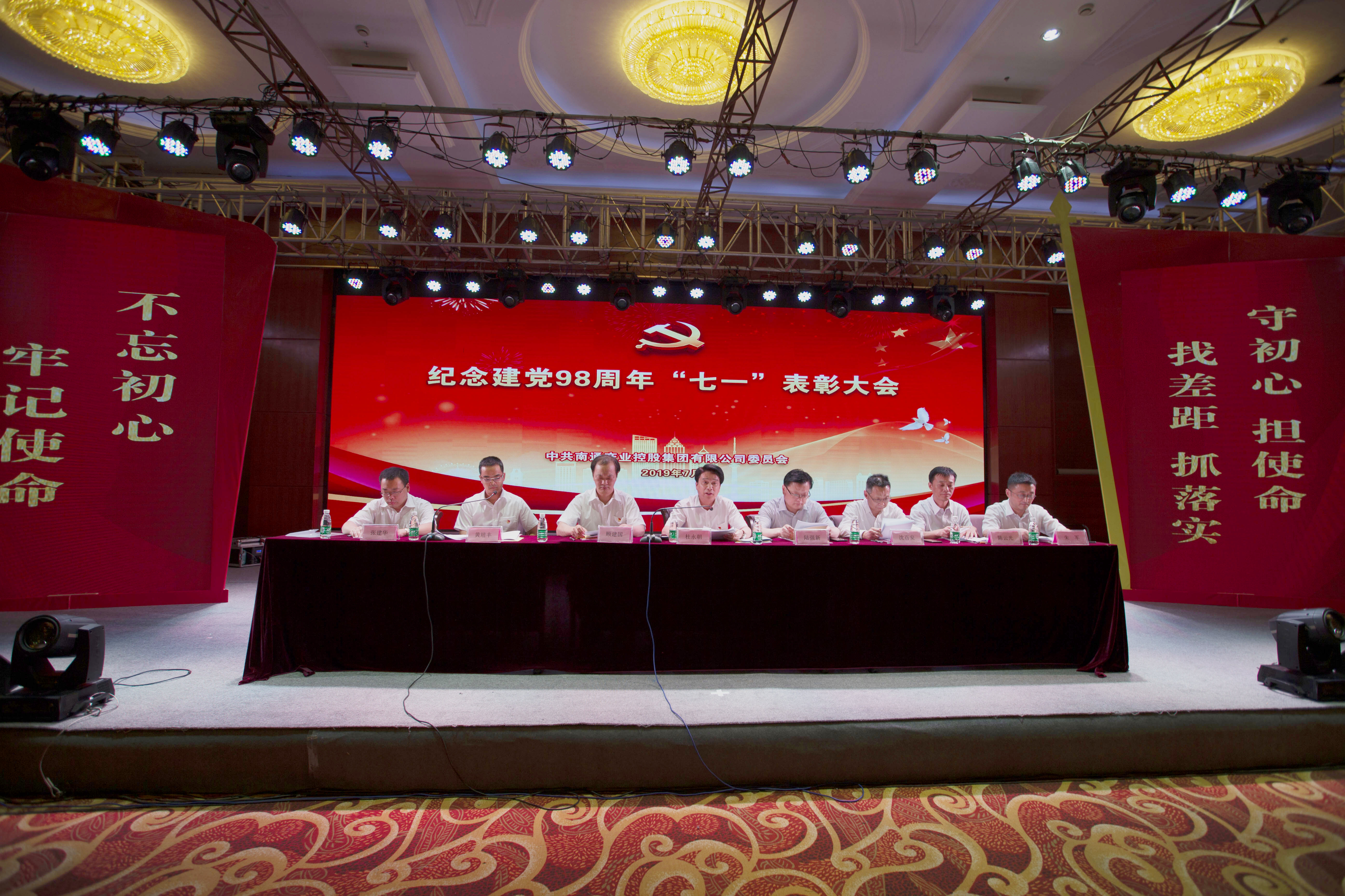 7月1日下午,南通產(chǎn)業(yè)控股集團有限公司召開紀念中國共產(chǎn)黨成立98周年七一總結(jié)表彰大會,大會由集團黨委委員、紀委書記黃培豐主持,集團領(lǐng)導班子全體成員、各投資企業(yè)主要負責人、優(yōu)秀黨員(黨務(wù)工作者)代表、新黨員及本部全體黨員參加會議。