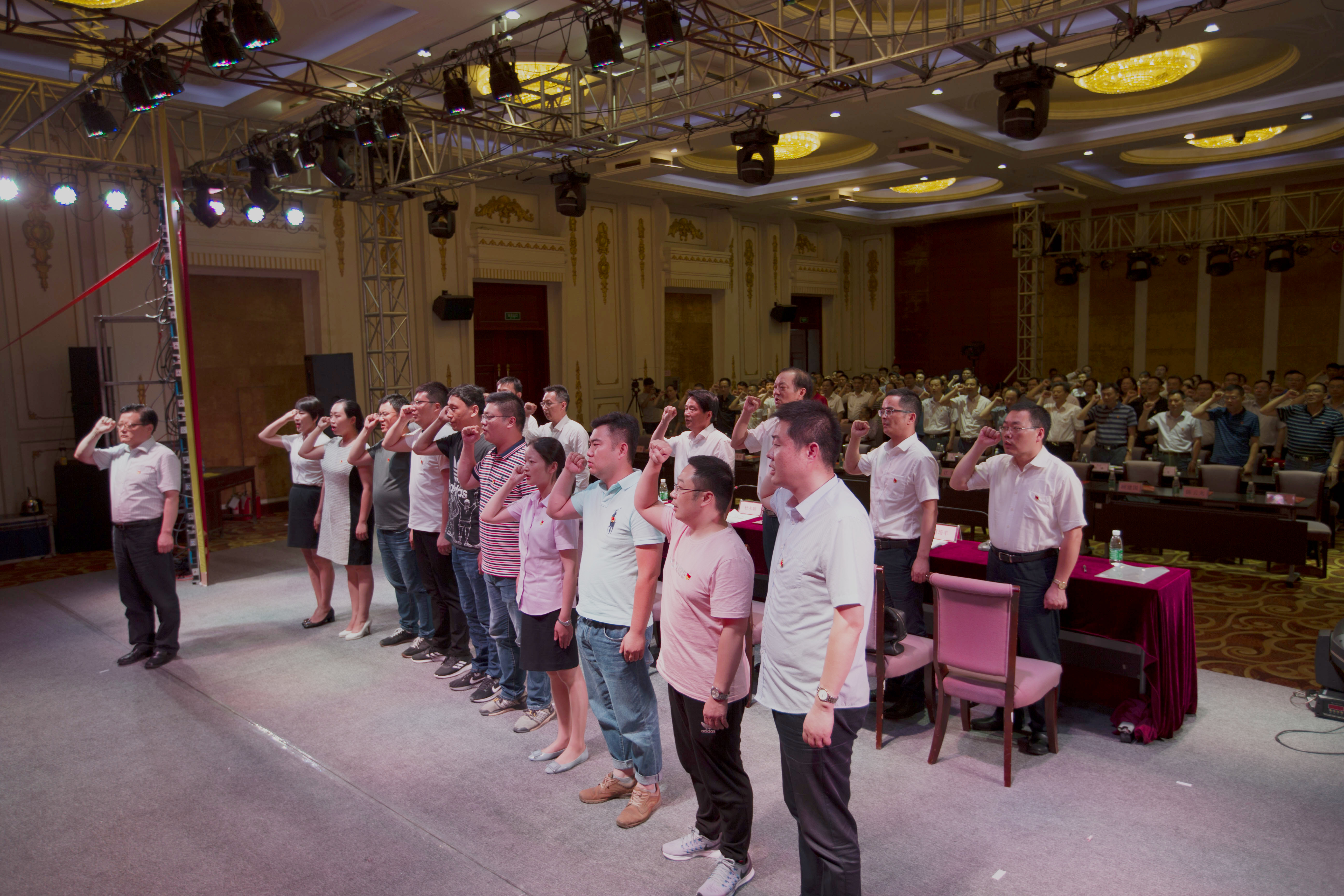 產(chǎn)控集團黨委副書記、副董事長、總經(jīng)理陸強新帶領(lǐng)新黨員進行入黨宣誓儀式,全體與會黨員莊嚴起立,舉起右拳,重溫入黨誓詞。