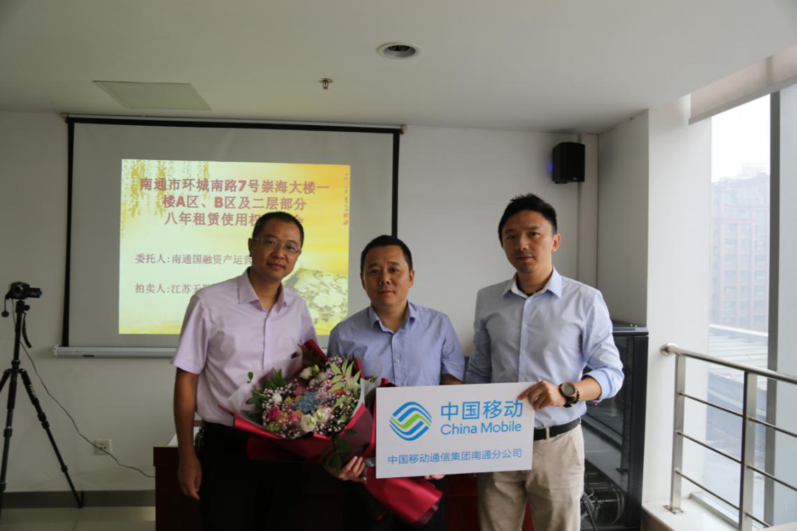 在宣讀了房屋租賃使用權(quán)拍賣的特別規(guī)定等文件并確認(rèn)各競租人無異議后,現(xiàn)場監(jiān)拍人遞交了本場拍賣會的底價函。經(jīng)拍租,中國移動通信集團(tuán)江蘇有限公司南通分公司代理人、張家港保稅區(qū)佑福珠寶貿(mào)易有限公司代理人分別拍中崇海大樓A區(qū)八年租賃使用權(quán)、B區(qū)八年租賃使用權(quán),并簽署了成交確認(rèn)書,成交年租金合計(jì)達(dá)620萬元,八年租金總額達(dá)4960萬元。公司領(lǐng)導(dǎo)代表公司向房屋競租人遞送了鮮花表達(dá)祝賀并合影留念。統(tǒng)一規(guī)劃,統(tǒng)一布局,統(tǒng)一招租,統(tǒng)一競租,國融公司充分挖掘崇海大樓優(yōu)越的商業(yè)地段和濃厚的商業(yè)氛圍優(yōu)勢,轉(zhuǎn)化為優(yōu)良、持久、高效的經(jīng)營收益,實(shí)現(xiàn)了該處資產(chǎn)科學(xué)升值。公司將以崇海大樓成功招租的經(jīng)驗(yàn)為借鑒,繼續(xù)做好所管理國有資產(chǎn)的升級改造,切實(shí)履行好國有資產(chǎn)保值增值的職責(zé),推動企業(yè)的高質(zhì)量發(fā)展。