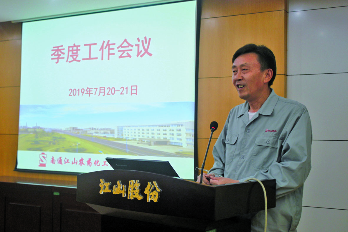 7月20-21日,南通江山農(nóng)藥化工股份有限公司召開2019年7月暨第二季度工作會議。江山股份公司領(lǐng)導(dǎo)及部門負責人、各事業(yè)部班子成員及三級單元負責人出席會議。