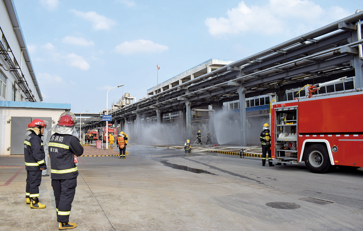8月20日下午4時,南通經(jīng)濟(jì)開發(fā)區(qū)液氯泄露消防聯(lián)動演練在南通江山農(nóng)藥化工股份有限公司電化事業(yè)部氯堿分廠液氯儲槽區(qū)進(jìn)行。