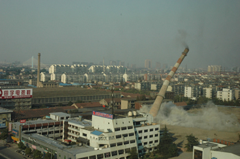 被爆破的煙囪高約80米,建于1980年,是由南通人自己建造的第一座高層煙囪,也是主城區(qū)最高的煙囪。去年,市委、市政府決定關(guān)停南通熱電和江山熱電,統(tǒng)一由大型供電企業(yè)集中供熱、供電。兩家熱電廠的關(guān)停,年可節(jié)約標(biāo)準(zhǔn)煤10萬噸、減排SO2約2800噸,為市區(qū)實現(xiàn)“十一五”節(jié)能減排目標(biāo)作出重大貢獻。
