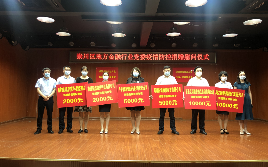 面對疫情,產(chǎn)控集團(tuán)投資企業(yè)紛紛用各自的實(shí)際行動(dòng),落實(shí)好國有企業(yè)的政治責(zé)任、經(jīng)濟(jì)責(zé)任和社會(huì)責(zé)任。南通眾和擔(dān)保向抗疫一線社區(qū)捐贈(zèng)10000元防疫物資,支持區(qū)域內(nèi)街道、社區(qū)的防疫工作開展。南通國信擔(dān)保向社區(qū)一線捐贈(zèng)2000元防疫物資,支持疫情防控工作。揚(yáng)子碳素向天生港鎮(zhèn)街道捐贈(zèng)了包括防護(hù)服、護(hù)目鏡、帳篷、測溫槍、礦泉水、方便面等一批防疫物資,用于疫情防控和便民服務(wù)工作,為疫情防控奉獻(xiàn)一份愛心。國融公司織密戰(zhàn)“疫”紅色“防控網(wǎng)”,黨員干部們深入門店,走進(jìn)商戶,做租戶的“宣傳員”“勸導(dǎo)員”“排查員”。擴(kuò)大戰(zhàn)“疫”宣傳“覆蓋面”,利用公眾號、官網(wǎng)、宣傳手冊等方式,把疫情防控科普知識等內(nèi)容送到租戶手上,用實(shí)際行動(dòng)筑牢安全防線,踐行國企責(zé)任擔(dān)當(dāng)。