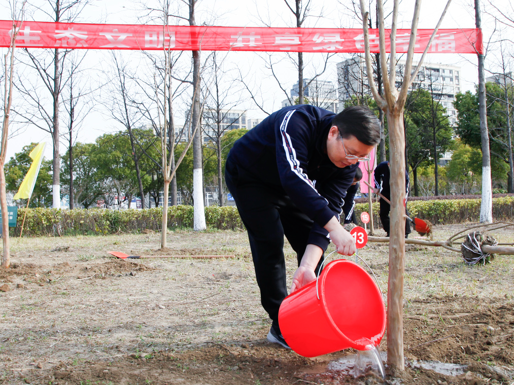 春風(fēng)和煦,萬物萌生,在位于通呂運(yùn)河綠廊星島水岸段的植樹現(xiàn)場,張劍橋董事長、顧建國總經(jīng)理與集團(tuán)其他領(lǐng)導(dǎo)帶領(lǐng)大家一起熱火朝天地?fù)]鍬鏟土、扶苗填坑、培實(shí)新土、提水灌溉。大家熱情高漲、干勁十足、二三人一組、分工協(xié)作,共同種下50余棵紫薇樹苗,牢固樹立和踐行了“綠水青山就是金山銀山”的理念,為推進(jìn)新時(shí)代生態(tài)文明建設(shè)、建設(shè)美麗南通貢獻(xiàn)產(chǎn)控力量。